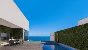 A private elevator entry opens up to meticulously curated interiors by renowned designer Steven G. offering spectacular spaces for living and entertaining. Every room provides natural sunlight and luxe finishes, including marble floors, impeccable custom millwork, and Dada cabinetry. Its 12-foot deep balconies come with fully collapsible floor-to-ceiling glass doors in the living room, a gourmet chef’s kitchen featuring Gaggenau appliances, and an oversized island overlooking the Bay. The expansive private rooftop has a swimming pool, jacuzzi, lounge area and fully-equipped summer kitchen surrounded by a lush green wall.