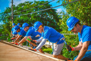 Over 70 CEOs and senior-level business leaders in South Florida ditched their offices to help construct a home for a local mom during Habitat for Humanity of South Palm Beach County’s annual CEO Build fundraising event presented by CP Group and Rack Electric. The event’s co-chairs recruited the leaders, Angelo Bianco, Managing Partner at CP Group, and Jesse Rack, Vice President at Rack Electric, who came together to demonstrate “Corporate Leadership in Action” by raising funds and awareness for the need for affordable housing.