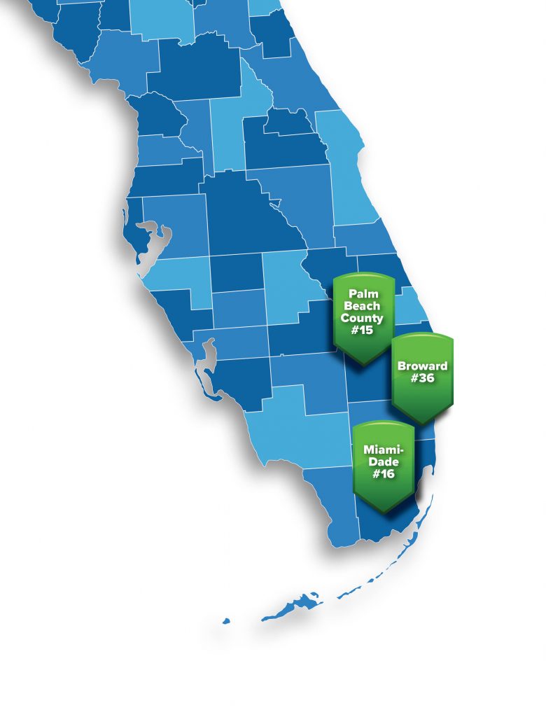 In a study by RentCafe, South Florida proved itself one of the country’s most competitive residential rental regions. Among the top 50 most competitive rental markets in the nation, Palm
