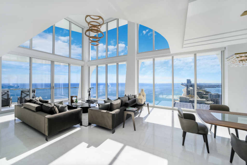 Former Pfizer CEO Ian C. Read is selling his corner condo in Miami Beach, and it’s a dream to behold. The 2-story unit at 16901 Collins Ave, Sky Villa 5101