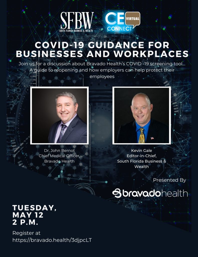 On Tuesday, May 12th, South Florida Business & Wealth hosted a live Virtual Connect webinar “COVID-19 Guidance for Businesses and Workplaces.” Our moderator, Editor-in-Chief Kevin Gale, interviewed Dr. John Bernot,