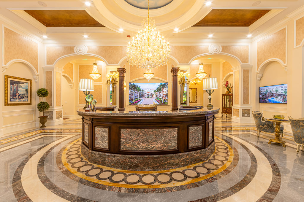 By Robin Hodes The Palace at Weston wastes no time making an impression. The entry to the leasing center recalls the lobby of a fine European hotel. Massive crystal chandeliers