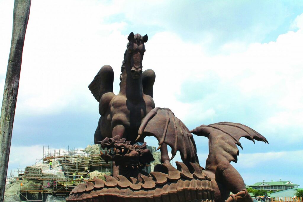 The 110-foot-tall statue of Pegasus slaying a dragon not only symbolizes Gulfstream Park owner Frank Stronach’s love of horses, but his determination to turn the track into a major family-friendly