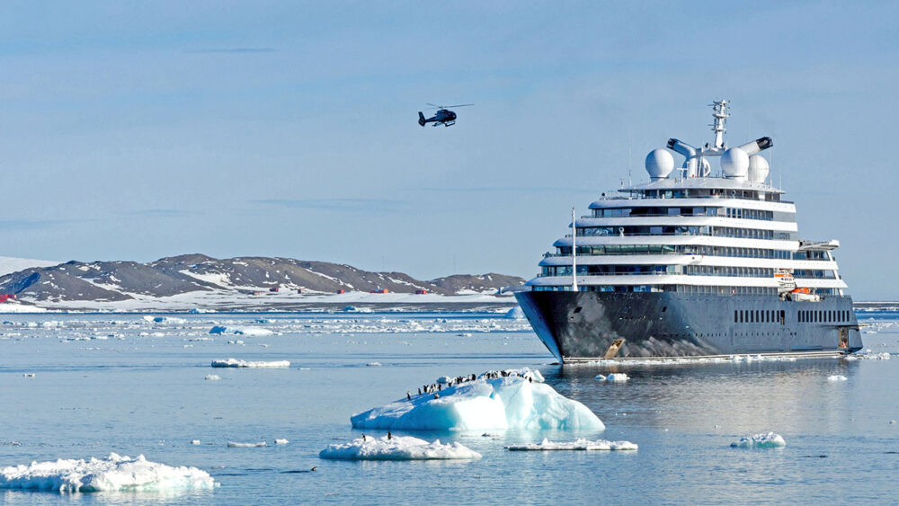 The aircraft landed on Snow Hill Island, where guests viewed Emperor penguins.