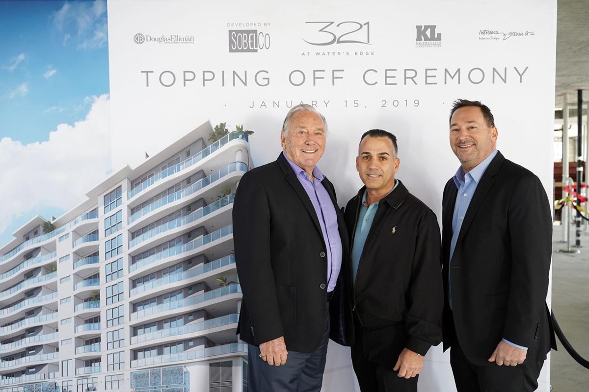 Samuel Sobel, Tirso San Jose and Jeffrey Sobel (WorldRedEye.com) SobelCo has topped off 321 at Water’s Edge, the waterfront condominium estate home community on Fort Lauderdale’s Intracoastal Waterway. 321 at