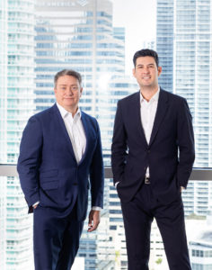 Roberto R. Muñoz, (L) president of the Miami-Dade Market for First Horizon Bank, has been re-elected to serve again as chairman of World Trade Center Miami. Alice Ancona (R) has been named senior vice president and chief operating officer.