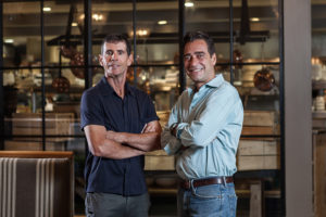 Business backstory: The healthy, eco-conscious concept launched by Giannuzzi (inset, right) and fellow co-owner Mitchell Robbins (left) in Boca Raton has been a culinary hit since opening its doors in 2013. Both of the Farmer’s Table locations (there’s also one in North Palm Beach) encompass some 20,000 square feet, giving the restaurants more seating capacity while maintaining social distancing. But it’s the responsibly sourced ingredients, chemical/pesticide/hormone-free proteins, and host of creative, nutritious offerings that continue to draw loyal diners. (dinefarmerstable.com)