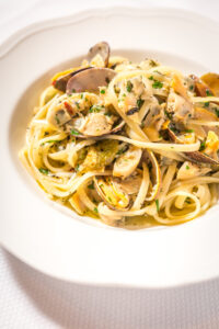 When pressed to name his favorite dish on the menu, he chooses the beef carpaccio, and when prompted to describe Chef Carbone in a few words, “the best” and “unending passion” spring to mind. It’s a passion evident in the delectable Dover sole, the memorable lobster ravioli and the tuna tartare, and the swirling, sculptural carrot cake. Even the Caesar salad, prepared tableside, registers as a moment of theater and toothsomeness.