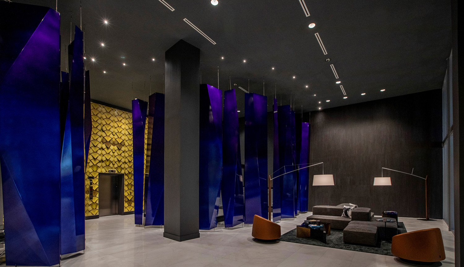 Quadro at the Miami Design District is notable for incorporating more than 542 unique art pieces and installations by Art with DNA. Alta Developer’s already completed project at 3900 Biscayne Blvd. has 198 turnkey residences and allows short-term rentals. The design is by Behar Font & Partners. Technology touches include Nest smart-home thermostats and a Bluetooth keyless entry system. Sizes range from large studios to 973-square-foot, one-bedroom residences and up to 1,280 square feet for two-bedroom residences with terraces. Prices start at $399,000. Fortune Development Sales is the agency.