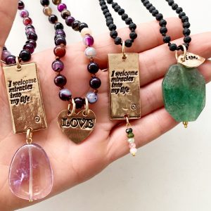 Some of the uplifting messages offered in the Katia Designs lineup include “remember who you are,” “perfectly imperfect,” “just breathe,” “my thoughts create my reality,” “anything is possible,” “fearless,” “I am strong,” “today I welcome miracles,” “what you seek is seeking you” and many others. The messages focus on being healing, goal-oriented, uplifting and positive.