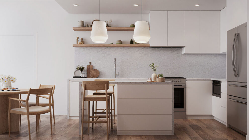The development’s architecture is designed by the world-renowned Nichols Architects, drawing inspiration from an aircraft’s aileron to create a building that is a testament to innovation while providing affordable luxury. The residences inside the building offer a perfect solution for those searching for functional elegance, with studio condominiums, spacious 3-bedroom floor plans, and townhomes that showcase high-quality finishes and amenities.