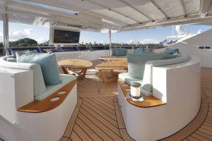 Then there’s the virtual footprint. Show exhibitors are enhancing their digital marketing presence, with more apps, livestreams and virtual walkthroughs than ever for digital attendees. Still, a virtual walkthrough does not replace stepping onboard a superyacht for a first-person inspection with a yacht broker and marine surveyor—especially when dealing with price tags that can run anywhere from $8 million to $80 million. For that reason, exhibitors continue to anticipate plenty of foot traffic.