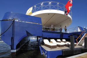 • Ocean Alexander debuts three new models; the smallest megayacht is 100 feet. An expansive use of glass and lowered bulwarks immerse the interior with natural light inside, so the passenger can almost touch the sea and sky at will.