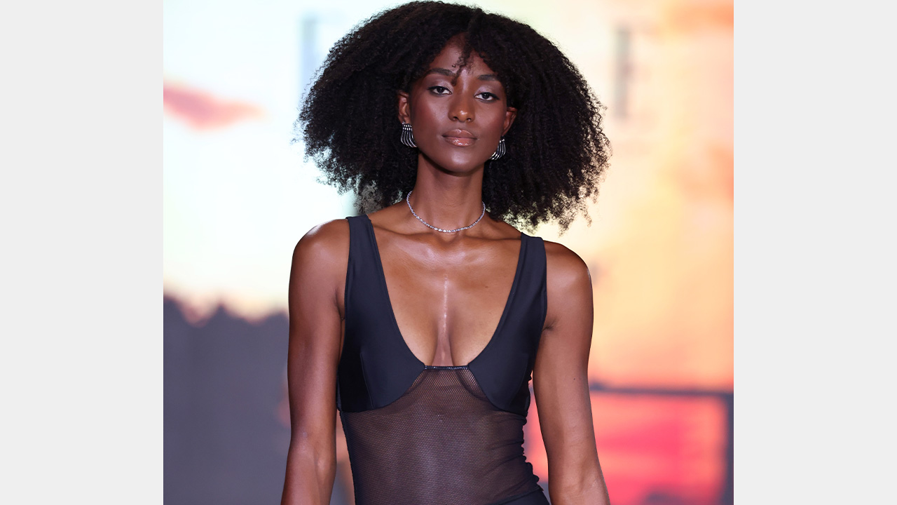 The JO Bella collection from Haitian Doll mesmerized the audience with its vibrant, iridescent purples, pinks and greens. The designs showcased intricate details, including cutout one-pieces embellished with rings down the middle and low-cut one-pieces, creating a striking and colorful statement on the runway.