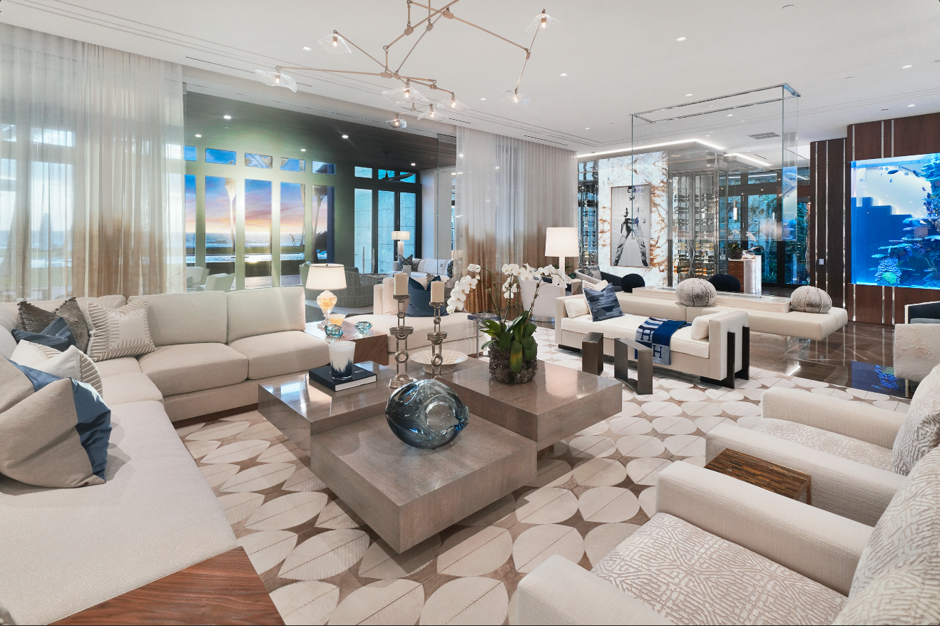 Located at 535 North County Road, the oceanfront mansion features nine bedrooms, 12 full bathrooms and seven partial bathrooms on more than 2 acres. Specialty rooms include a game room, wine cellar, bar and even a beauty salon with a pool and movie theater outside.