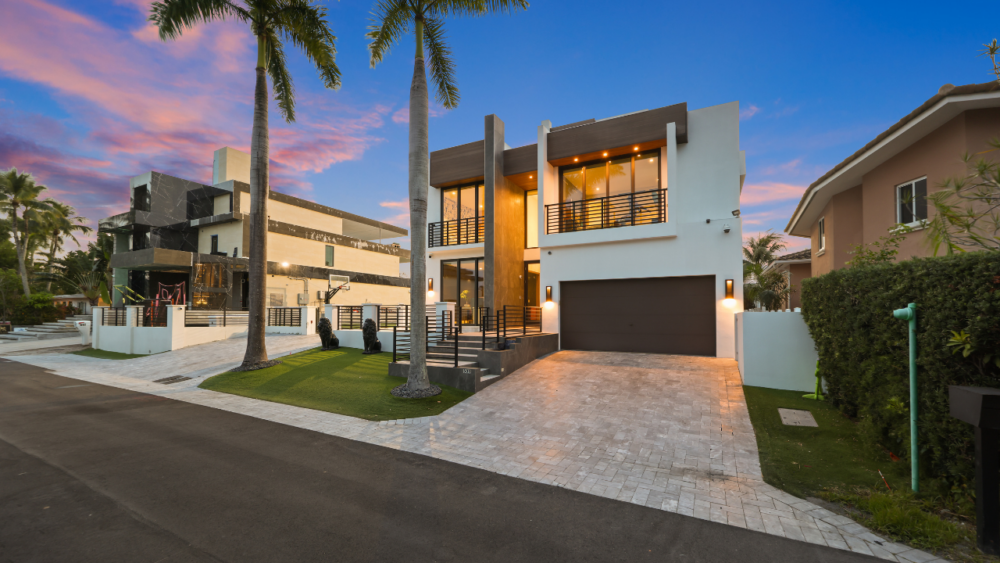 Set on an oversized double lot, the three-story estate offers five spacious ensuite bedrooms and six and a half bathrooms. It includes floor-to-ceiling glass walls that frame water views, soaring ceilings, and an open-concept layout. The home comes complete with a dedicated fitness room with floor-to-ceiling windows and a sauna, gourmet chef’s kitchen that is equipped with top-of-the-line appliances, custom cabinetry, and an oversized island. Fully equipped with Control4 smart home automation, the home allows for seamless control of lighting, climate, security, and entertainment.