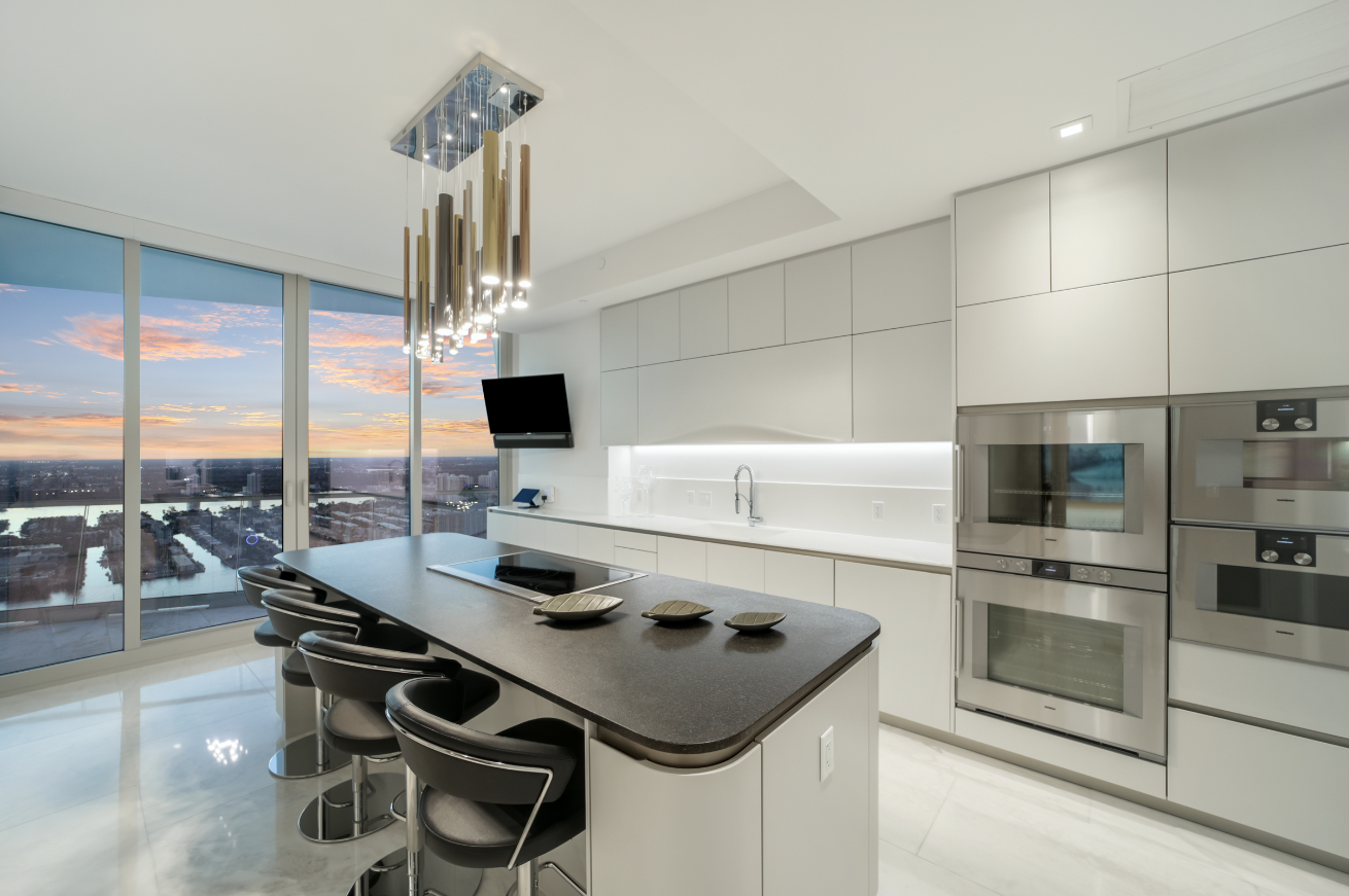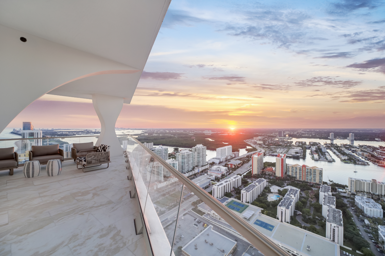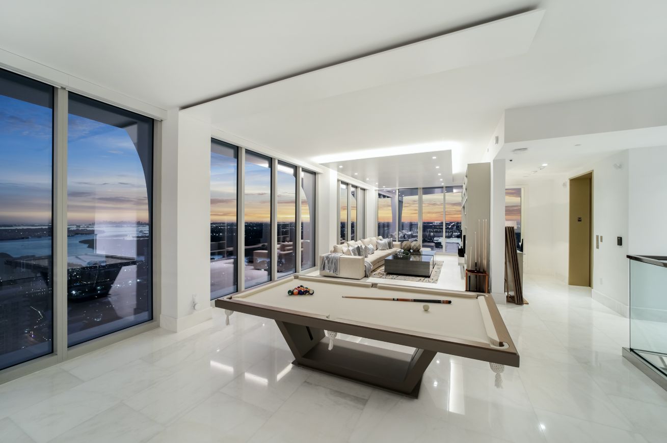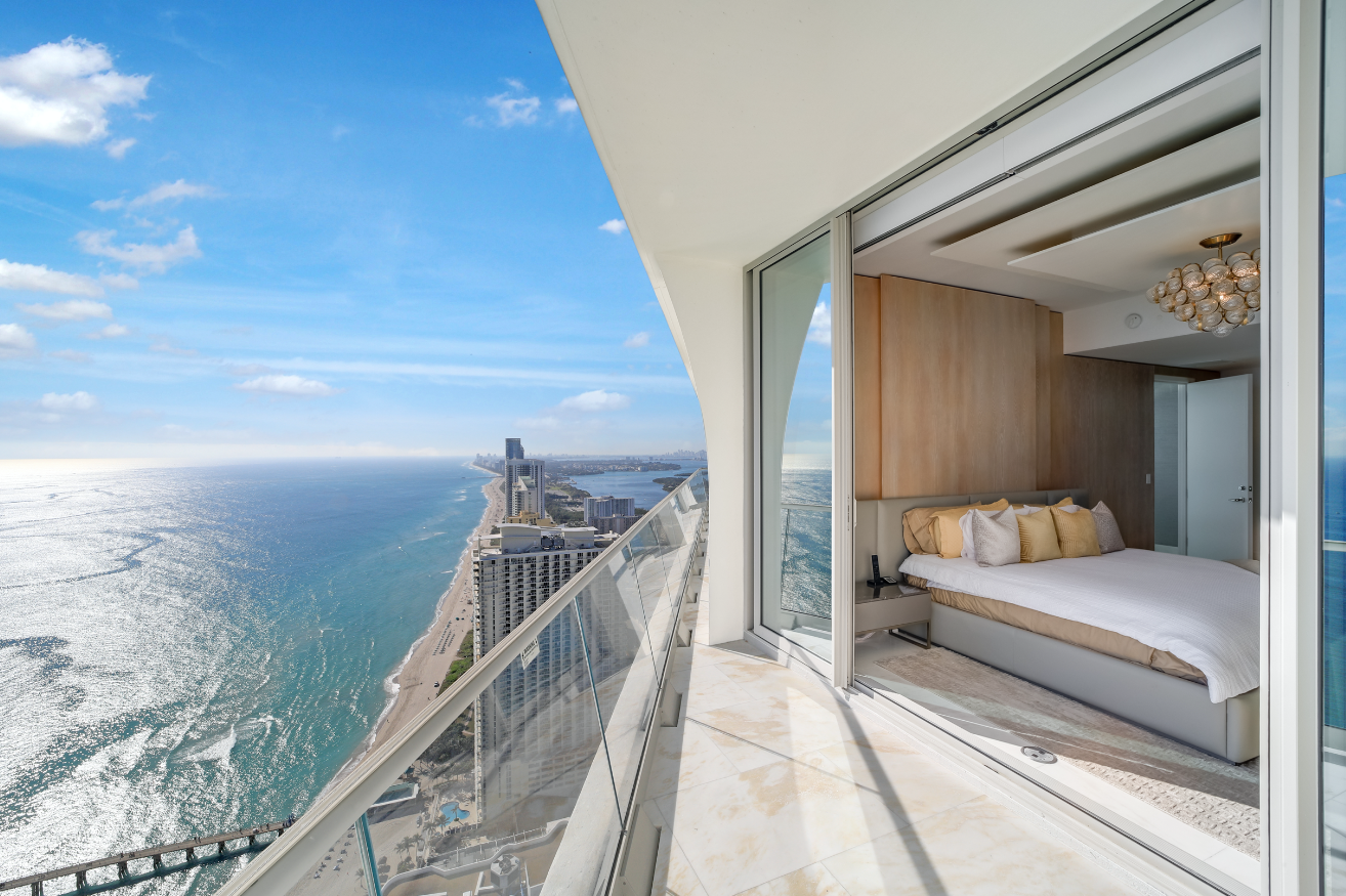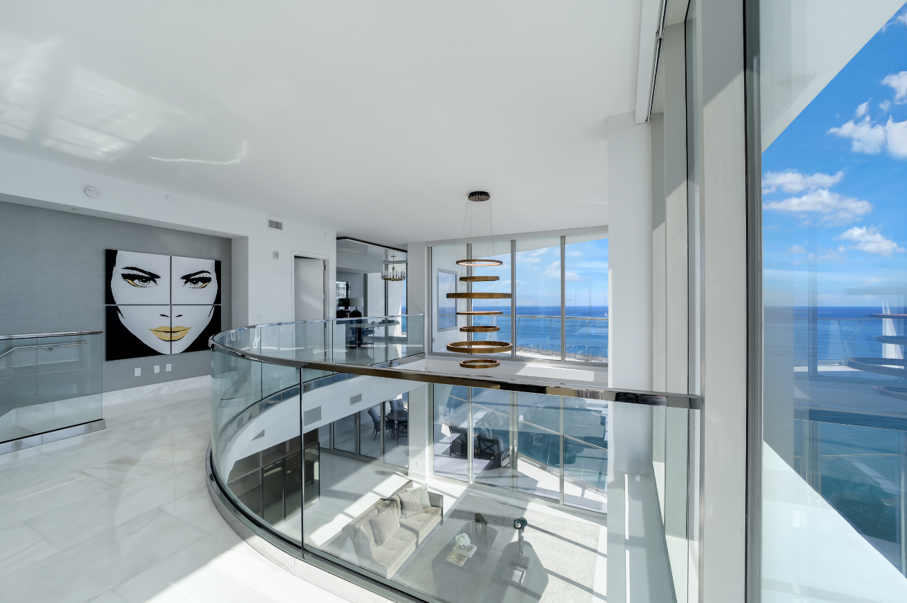 The 2-story unit at 16901 Collins Ave, Sky Villa 5101 at the Jade Signature building is listed for $17.6 million and features 20-foot double height ceilings in the formal living room as well as 270-degree ocean and city views. The turnkey unit on teh southeast corner of the 51 and 52 floors includes five bedrooms and 7.5 bathrooms with 6,735 square feet indoors and 1,161 square feet outdoors. Other features include two offices, white marble floors, private elevator with fingerprint recognition and an open terrace in each room. The unit is also decorated and finished by Vianny Sanguily at Urvan Management and features a Creston system that controls sound, lights, air conditioning, internal cameras, lights and more.