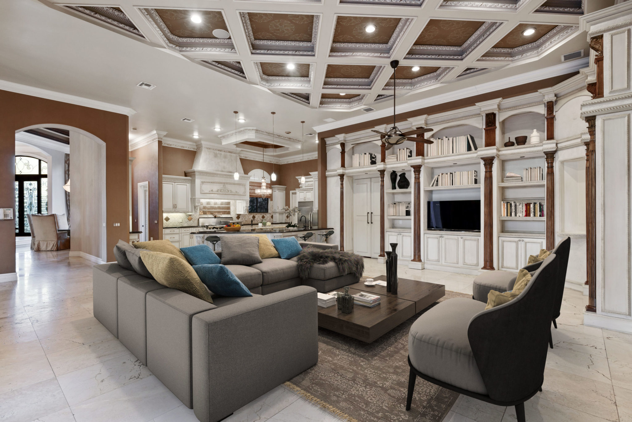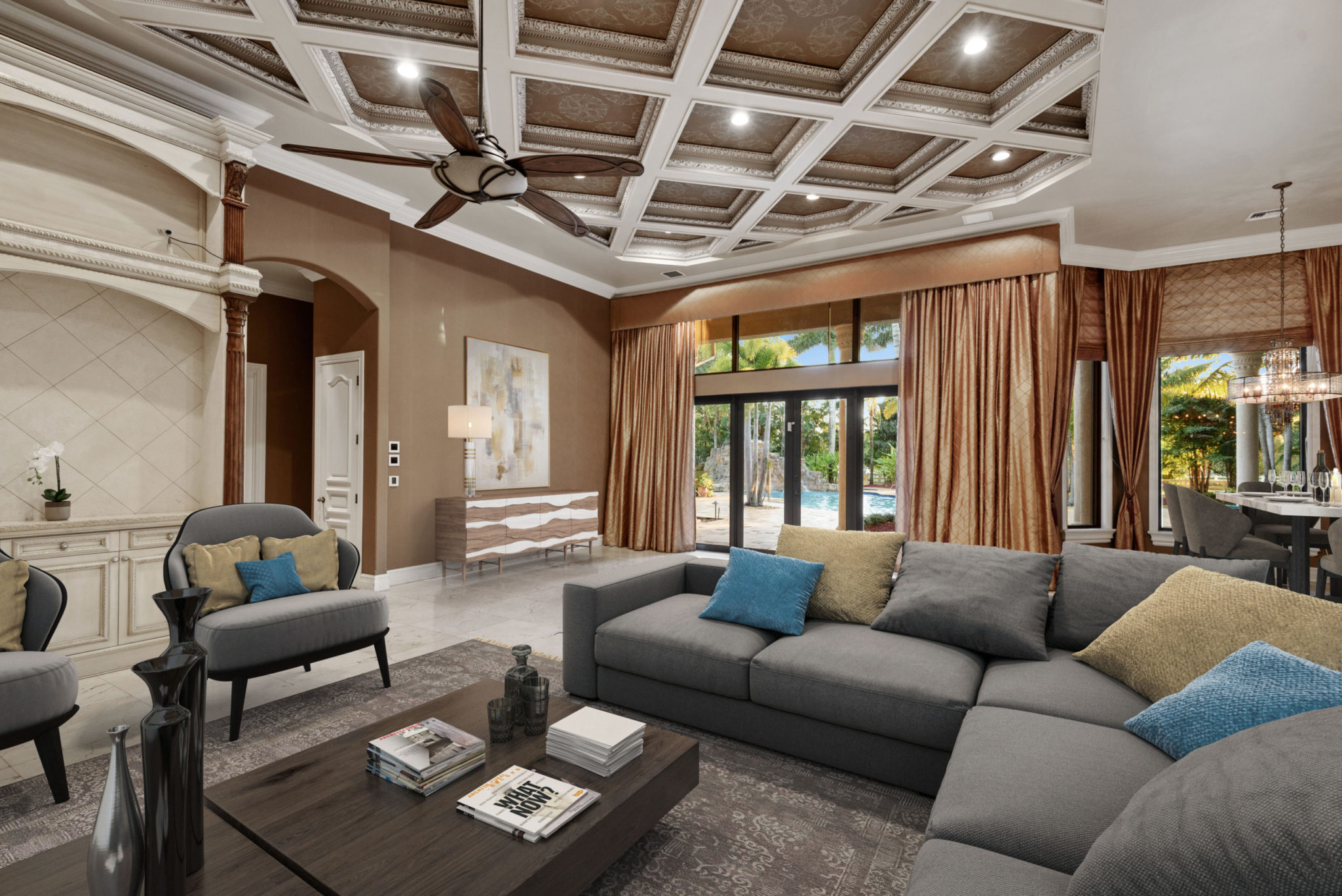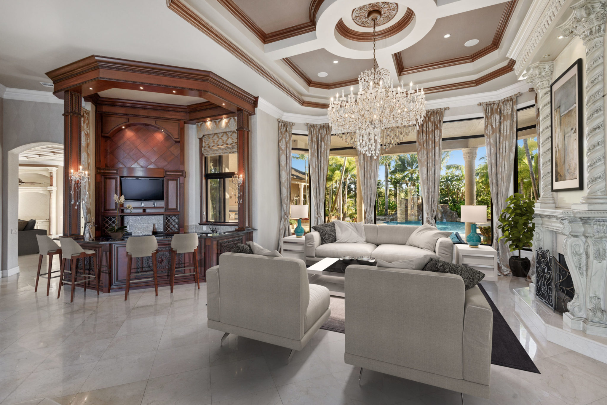 Ross will enjoy plenty of amenities at the estate, which includes a main house and a guest house. In the 7,361-square-foot main house, four bedrooms and 5.5 bathrooms provide comfortable living space while an indoor bar with pool table, yoga room and hidden movie theater make for special moments. The 1,314-square-foot guest house has two bedrooms, one bathroom, a kitchen and living room. Outdoors, there’s a pool with waterfall, deck and summer kitchen.