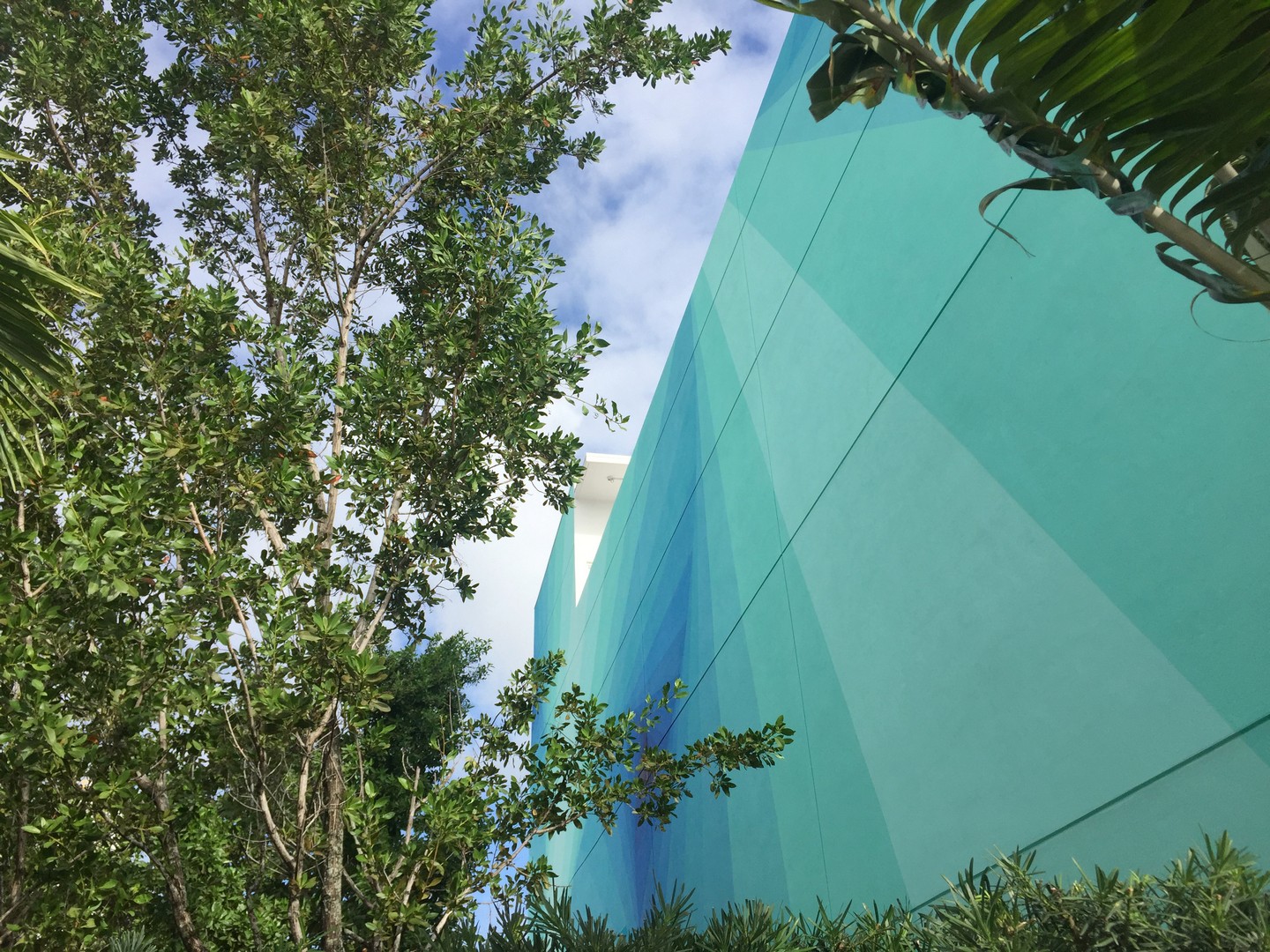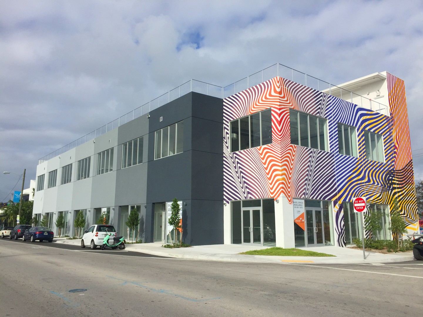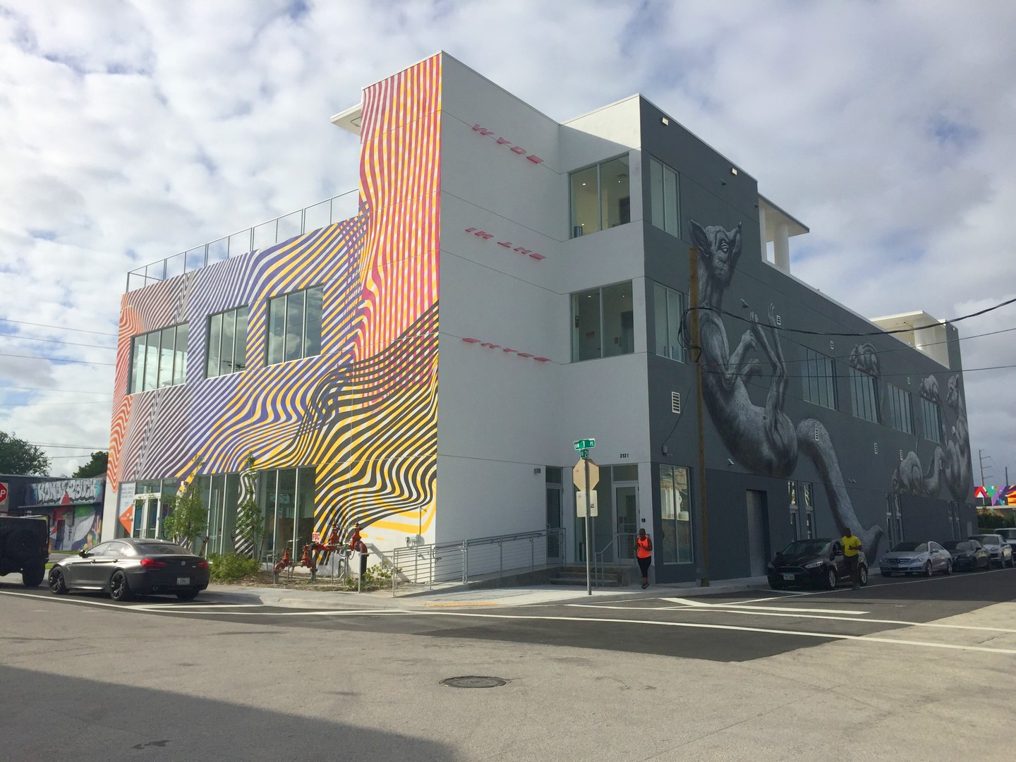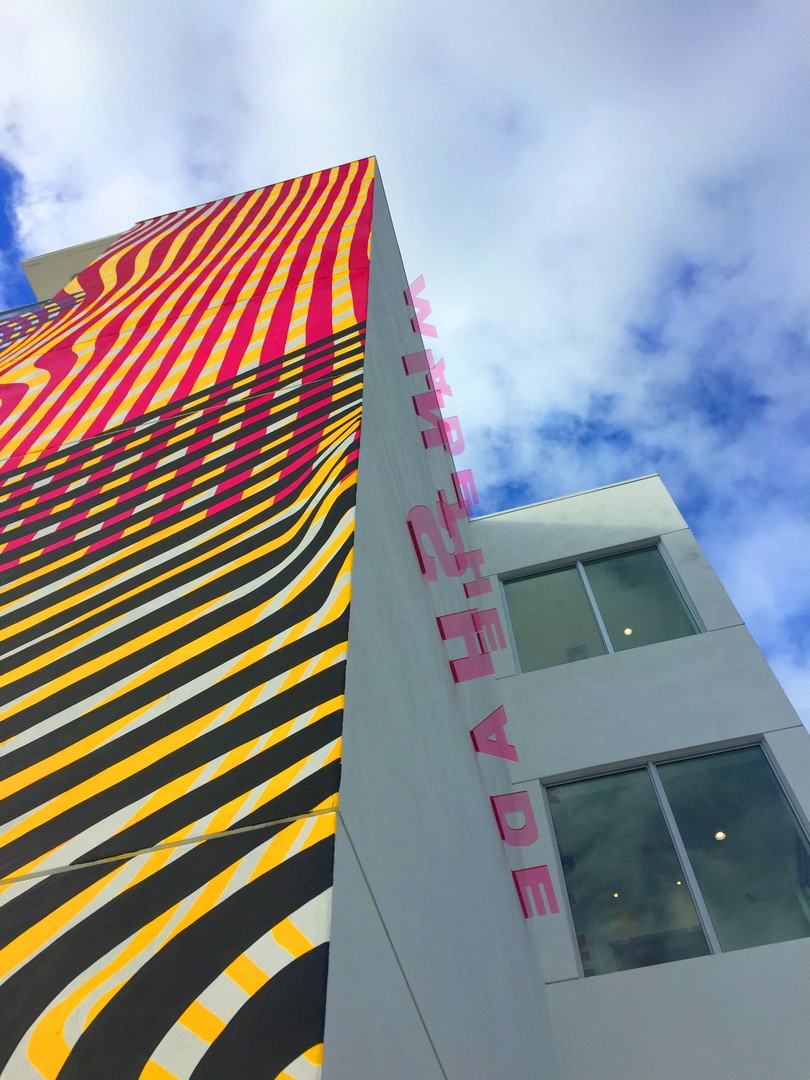 The new HQ is at 2121 Northwest Second Avenue, about three blocks south of Panther Coffee and five blocks from the Wynwood Walls outdoor gallery. The exterior has vibrant stripes and a horizontal signage that casts the shadows of words on the exterior – one example being “made in the shade.”