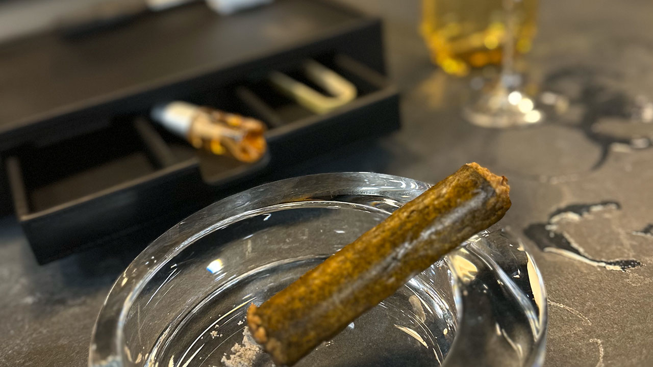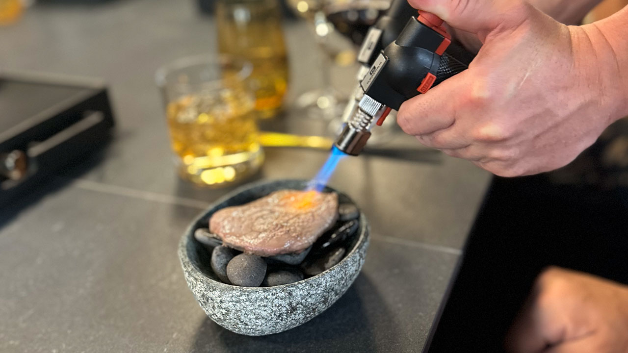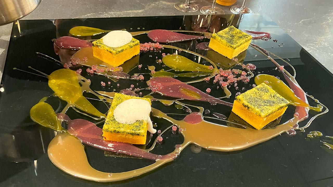 As the meal progressed, things heated up. One showstopping course involved the appearance of a smoker box, which was appropriate since the ingredients emerged in the form of a cigar. “The smoke machine doesn’t just offer a great smoke,” Chef Malek said. “It also delivers a lot of flavor, and it’s a magical touch, a great show. People love it.” Another theatrical course required the blue flame of a smoking gun.