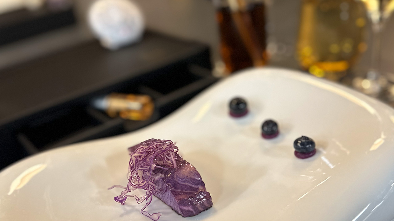 All this background is to say that I’m not an easy sell—I’m even a little jaded when it comes to the tasting menu. But I should have known better. On a recent Bermuda-to-Miami cruise on Scenic Eclipse II, the cuisine on the previous nights had been top-notch: both the tangy toothsomeness of Koko’s Asian Fusion (I loved the Lebanese meze) and the French refinement of Lumière (for the set degustation menu, you can choose which main meal you would prefer—my filet of sole was delectable). The level of the cuisine matched the quality of the lavish suites (the bed was sumptuous) and the Armani-style aesthetic of the ship’s interior design.