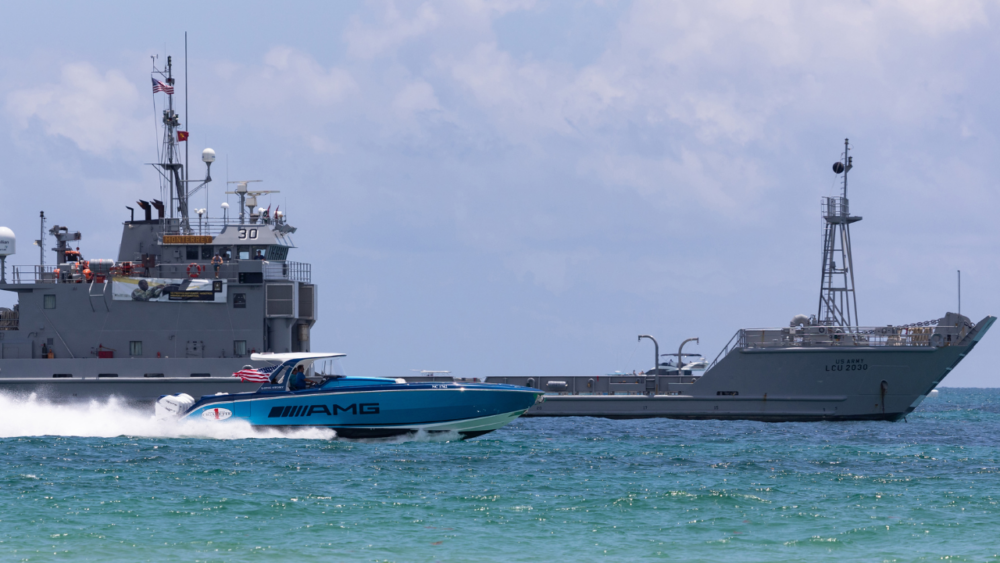 The Cigarette Racing Team brings adrenaline to the water with offshore powerboat demonstrations reaching speeds of over 130 mph, delivering aquatic thrills right off the shoreline on event days.