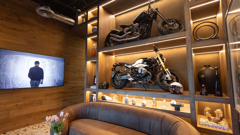 Miami-based Rilea Group has launched its new sales gallery for The Rider at Wynwood, catering to residents seeking a luxurious rock-n-roll lifestyle. The space aims to fully immerse buyers into a lifestyle designed for today’s jetsetters and investors, with decadent living spaces and rebellious amenities. The sales gallery is at 89 NE 27th St., Suite 105, in Miami’s Wynwood neighborhood. It is situated next to the future Brightline/TriRail high-speed train station, less than 100 yards from the development site. Upon arriving at the sales gallery, visitors are immediately greeted by the sight of a Harley-Davidson with a sidecar parked out front greets them, which is a future amenity for residents. As they step inside, they enter a lounge area with a wall adorned with full-sized motorcycles and designer decor.