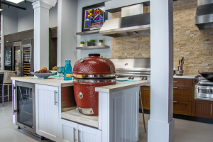 How to achieve it: Make your grill the focal point. You can do this by creating a centerpiece around whatever you’re cooking on, with countertops or mobile islands. “Even if the space is limited, an existing grill can be built into a custom-designed workspace,” Feinberg says. From there, the sky’s the limit. For an outdoor area, Feinberg suggests elements like cabinetry, a pizza oven, maybe an outdoor refrigerator or one for wine. “Add some comfortable outdoor seating, and your backyard will rival any luxury resort around,” he says.