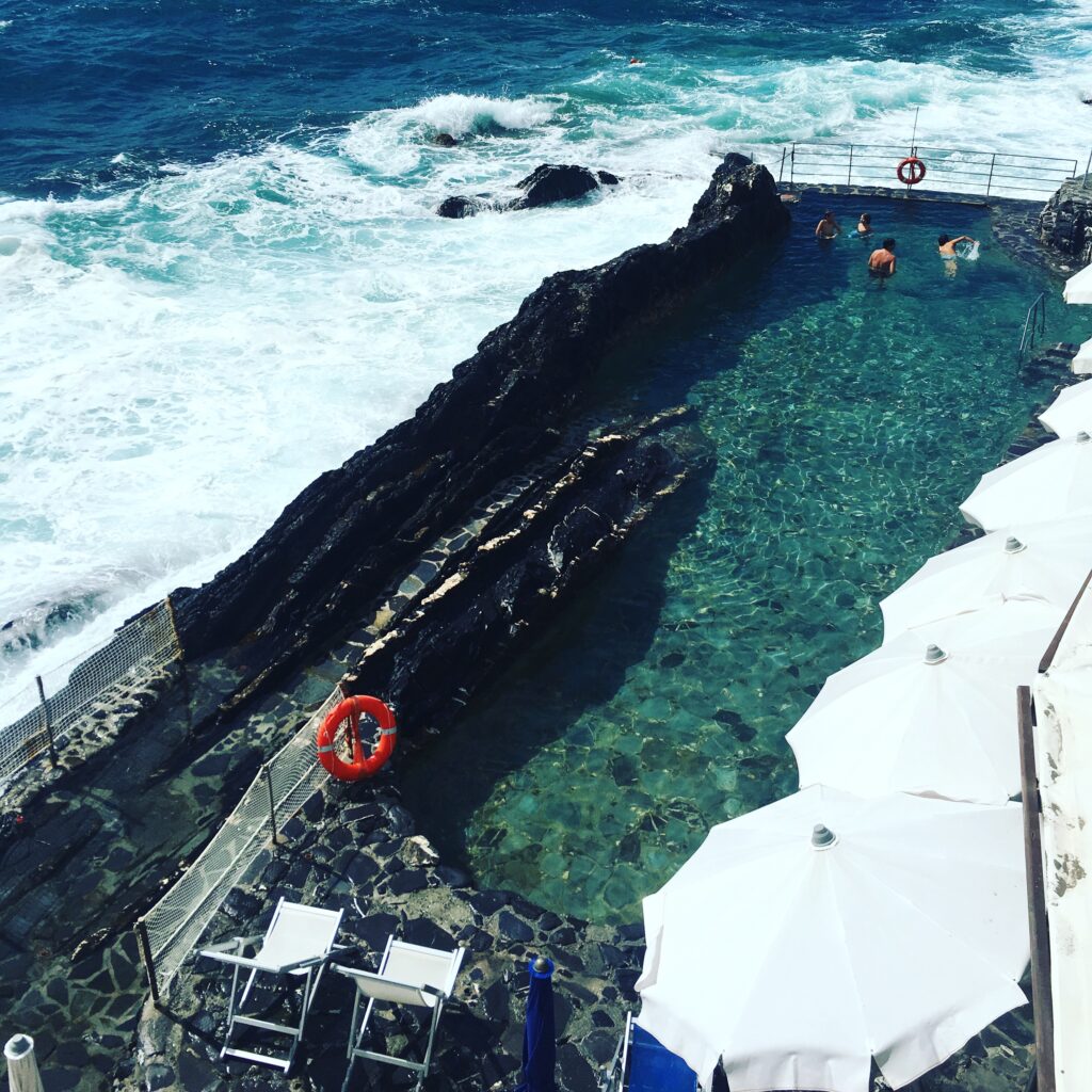 It was a small café and beach club—except the “beach” was a seawater pool that had been carved dramatically from the rocky coast. A strapping tattooed lifeguard kept watch over the glistening jade-colored water. Once in a while, the roiling sea would throw a frothy wave into the pool. The Italians like their civilizing effect on nature, so there were umbrellas and lounge chairs for hire, and in the restaurant above, fresh-squeezed orange juice and cornettos, the Italian version of a croissant (which is also called brioche in Northern Italy). Once I got in the pool, I never wanted to leave.