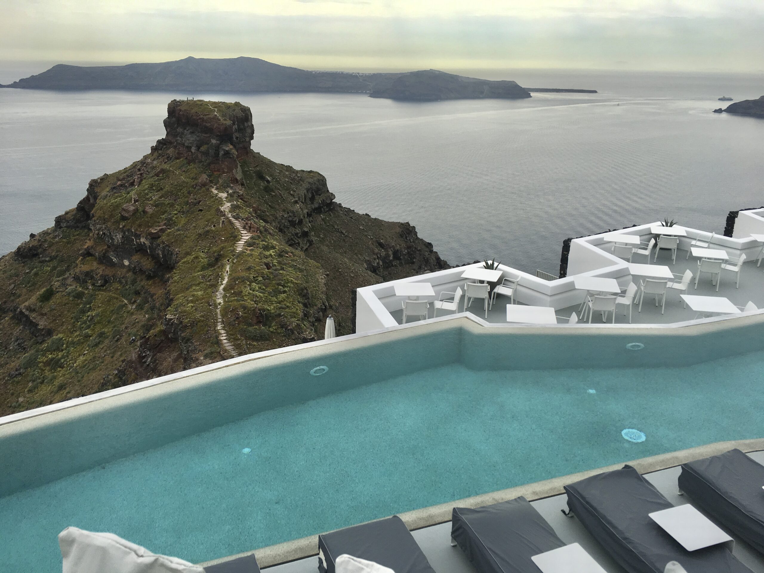 After lunch, my friend Vincent I and were able to coax our parents back towards the ship so we could hike to the other villages that rise above the basin-like caldera. The Grace Hotel—part of the Auberge chain—was new then and it beckoned, so I grabbed an outside table and ordered a bottle of sparkling so we could seamlessly slip into the hotel’s stunning infinity pool. The Grace is in Imerovigli, the highest village—and probably my favorite—which overlooks Skaros rock. The rock is a dramatic sight, like a craggy, flat-topped pyramid with the royal blue sea as a backdrop. We positioned ourselves at the lip of the pool, just staring, mesmerized, and barely caught the last tender back to the ship anchored in the harbor.