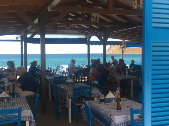 Nearby, the alfresco Kosmos Taverna was serving up tzatziki, dolmas (stuffed grape leaves) and zucchini fritters against a panoramic sea view. Tzatziki is truly one of my favorite things to eat and I order it religiously when I’m in Mediterranean restaurants in the States. But there is nothing, nothing, like having Greek yoghurt spiked with garlic and dill in Greece. It was as if I didn’t realize I had returned to Greece until Kosmos provided me with this moment of brilliant savory authenticity. And the fried puffs of zucchini were so tasty that I was glad that I’d gone easy at breakfast.
